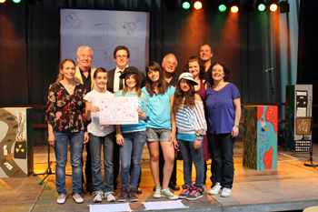 Für die zusätzliche visuelle Unterstützung zeichnet Ursula Matzner simultan zu den Aufführungen Illustrationen, die mittels Videokamera auf eine große Leinwand projiziert und ins Bühnenbild integriert wurden. Als Solisten waren die Vöslauer Sängerin Julia Bruckner (alte Dame, Mädchen) sowie als Florian Pehofer als Geschäftsmann zu hören. Die Rolle des Erzählers wurde in eindrucksvoller Weise von Hans Redl übernommen. Der von Musikschullehrerin Isabella Maierhofer einstudierte Kinderchor der Musikschule meisterte sowohl seinen gesanglichen Part und auch die vielen tänzerischen Einlagen bravourös. Die zahlreichen Schülerinnen und Schüler bedankten sich bei den jungen Künstlern mit euphorischem Applaus. Die Aufführungen werden den Besuchern sicher noch lange in Erinnerung bleiben.