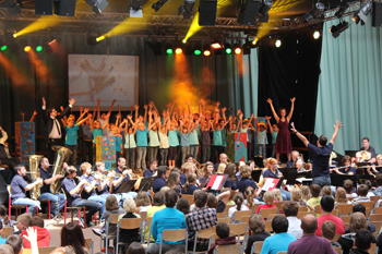 Im Rahmen zweier Konzerte hat das Blasorchester Bad Vöslau gemeinsam mit dem Kinderchor der Musikschule Bad Vöslau das Märchen-Musical „Freude“ von Paul Nagler (Text) und Kurt Gäble (Musik) zur Aufführung gebracht. Inhaltlich beschäftigt sich das Musical mit der verloren gegangenen Freude der Industriegesellschaft und ihrer oft mangelnden Sensibilität gegenüber den einfachen Dingen des Lebens. Die schwungvolle Musik wurde vom Blasorchester sehr feinfühlig und dennoch auch mit sehr rockigen Bläserklängen dargeboten. Die Bühnendekoration wurde dabei von SchülerInnen der SMS Bad Vöslau in projektbezogener Zusammenarbeit künstlerisch gestaltet.
