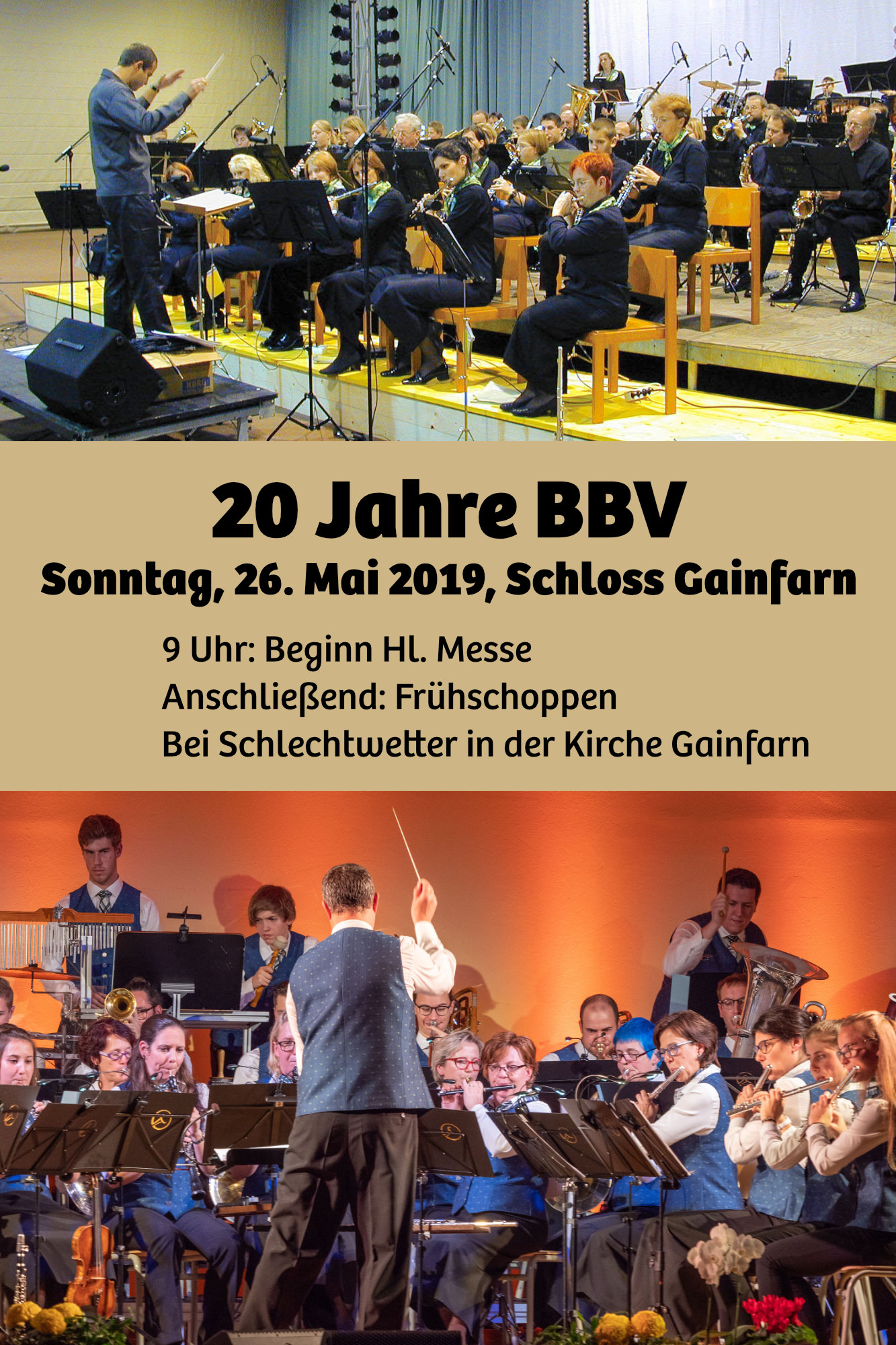 Vor 20 Jahren wurde das BBV gegründet! Wir feiern das mit einer Festmesse mit musikalischer Begleitung am 26. Mai um 9 Uhr beim Schloss Gainfarn und einem anschließenden Frühschoppen. Bei Schlechtwetter findet die Messe in der Pfarrkirche Gainfarn statt.