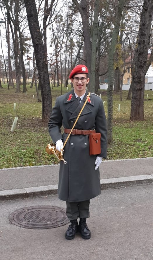 Jacob Sauer absolviert derzeit seinen Präsenzdienst bei der Gardemusik in Wien. Nach einer siebenwöchigen Grundausbildung in Horn ist er seit August nun in der Maria-Theresienkaserne als 1. Trompeter bei der Gardemusik Wien stationiert: