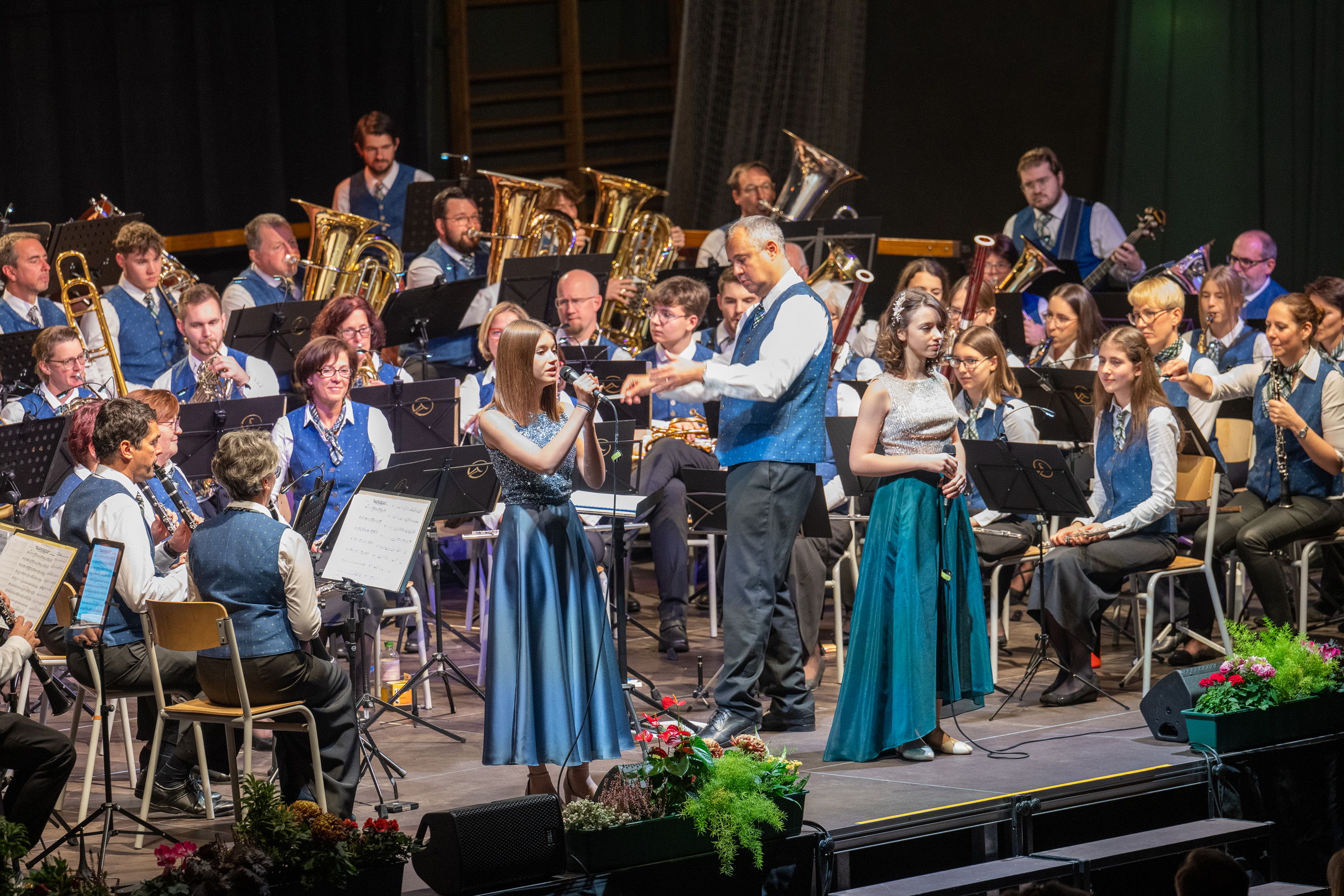 Die Programmauswahl reichte Marsch „Fanfarenklänge“ von Fucik, über die heimatland-Overtürer „Ode an der Freude“ aus der 9. Symphonie von Beethoven bis hin zu bekannten Melodien aus dem Film Aladdin oder den Hits von Billy Joel.Höhepunkt des ersten Konzertteils war das spannende programmatische Werk „Die Hexe und die Heilige“ von Steven Reinecke, das für berührende Momente beim Publikum sorgte. Der zweite Konzertteil stand wieder ganz im Zeichen der Unterhaltungsmusik und „Blasmusik im Bigband Sound“. Besondere Begeisterung lösten dabei die beiden jungen Sängerinnen Maya und Irina Filimon (Schülerinnen der Musikschule Bad Vöslau, Klasse Maierhofer) mit ihrer Interpretation der Popballaden „When You Believe“ und „Das Farbenspiel des Lichts“ aus. Das Konzertpublikum bedankte sich beim Orchester mit tosendem Applaus und „Standing Ovation“. Fotos vom Konzert finden Sie unter http://www.bbvlive.com bzw. http://www.facebook.com/blasorchesterbadvoeslau Fotos: Johann PloyerEin großer Erfolg war „BBV in Concert 2022“ am 06.11. in der ausverkauften Thermenhalle