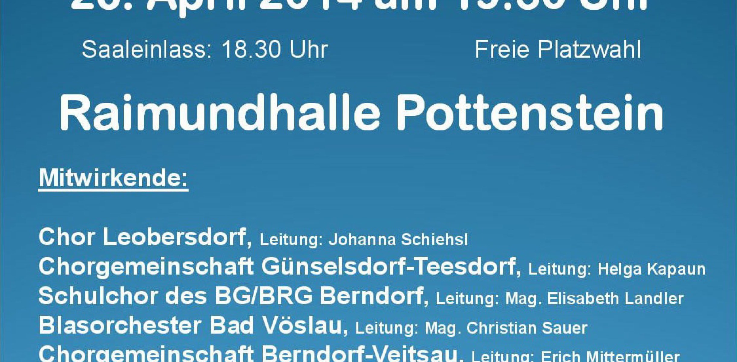 Am Samstag, 6. September, wird um 19.30 Uhr im Kurzentrum Bad Vöslau das Konzert und die Diashow des Jubiläumsfestes (Gestern - Heute - Morgen) wiederholt