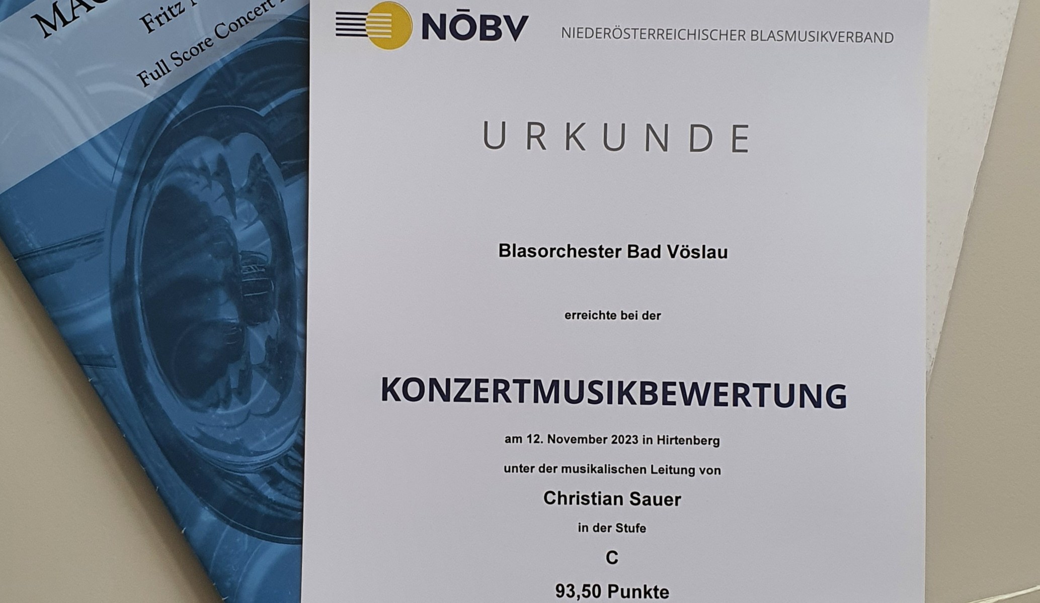 93,5 Punkte in der Stufe C und somit Tageshöchstwertung gab es am 12.11.2023 für das BBV beim Wertungsspiel in Hirtenberg für die Stücke „Magic Moments“ und „Lord Tullamore“. Wir freuen uns sehr über diesen großartigen Erfolg!